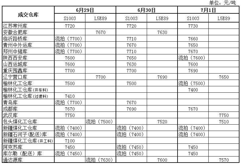 神华PP7月1日竞拍价格一览