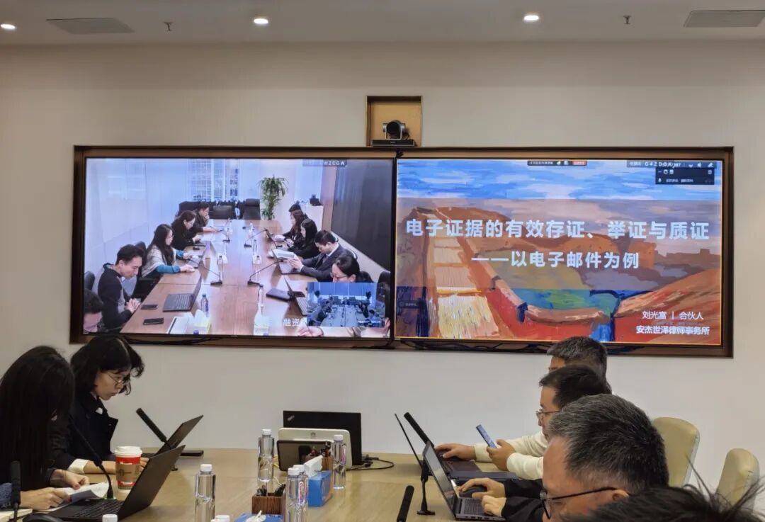 2025年11月18日,安杰世泽律师事务所合伙人刘光富律师受中國中信金融資産國際控股有限公司(下称“中信金融資産國際”)邀请,以“电子证据的有效存证、举证与质证——以电子邮件为例”为主题,作了专题讲座。中信金融資産國際法律合规部及业务处在香港、深圳两地的相关领导、员工,以及安杰世泽律师事务所深圳办公室的相关合伙人、律师近30人参加了该讲座。