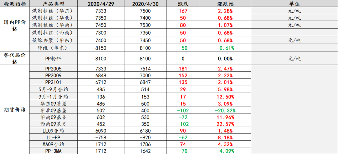 今日大宗商品高开震荡走势,文华商品指数最终收涨0.8%。化工板块震荡走势,整体上涨1.43%,其中PP09合约震荡上行走势,最后上行1.89%,报7000点,PP05合约震荡上行走势,最终收涨2.09%。
