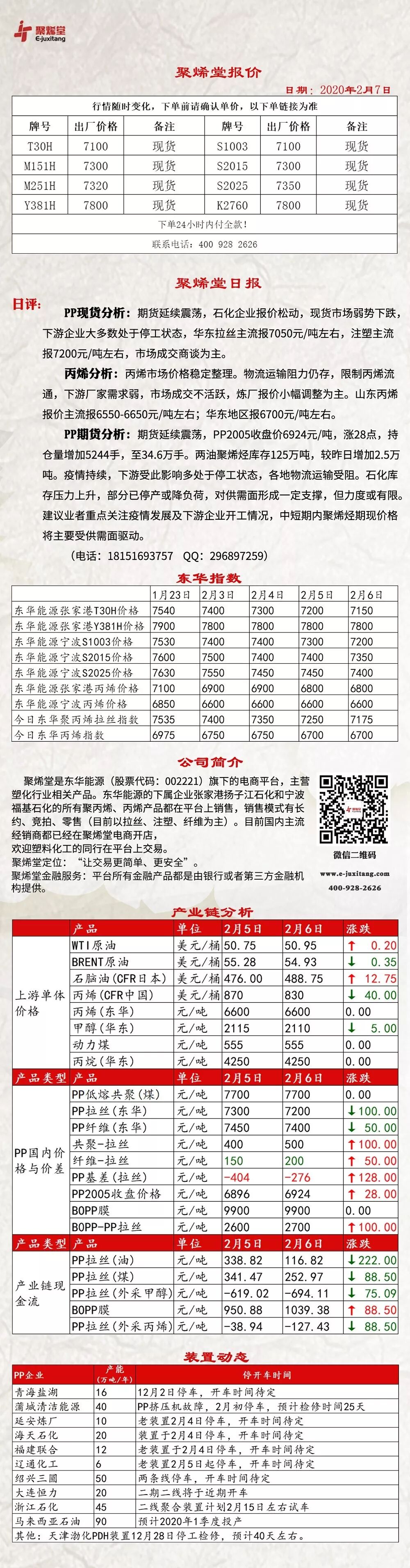 导读:聚烯堂今日报价【20200207】