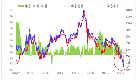 ◆ 粉料低价优势不再,被挤出。粉料一个月的需求大概25-30万吨之间。
