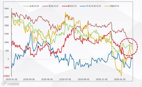 春节后聚丙烯各成本端下跌较多,上周原油价格有所回升,丙烷价格略有上涨,而山东丙烯价格下跌,使得外购丙烯利润有所上涨。