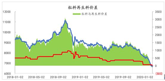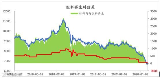 ◆ 回料低价优势不再,被新料所替代。一级再生料全国每月5万吨每月左右,二级体量大,在30万吨每月。