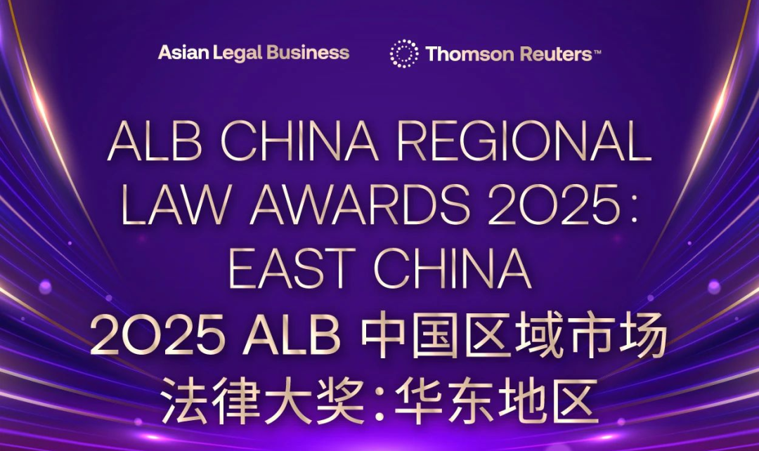 2025年7月17日,汤森路透旗下国际法律媒体《亚洲法律杂志》(Asian Legal Business)公布了2025 ALB中国区域市场法律大奖:华东地区入围榜单(China Regional Law Awards 2025:East China)。凭借在华东地区卓越的实力和突出的市场表现,安杰世泽律师事务所荣获“年度华东地区争议解决律师事务所大奖”、“年度华东地区劳动与就业律师事务所大奖”、“年度华东地区海事海商律师事务所大奖”、“年度华东地区能源和资源交易大奖”四项提名。