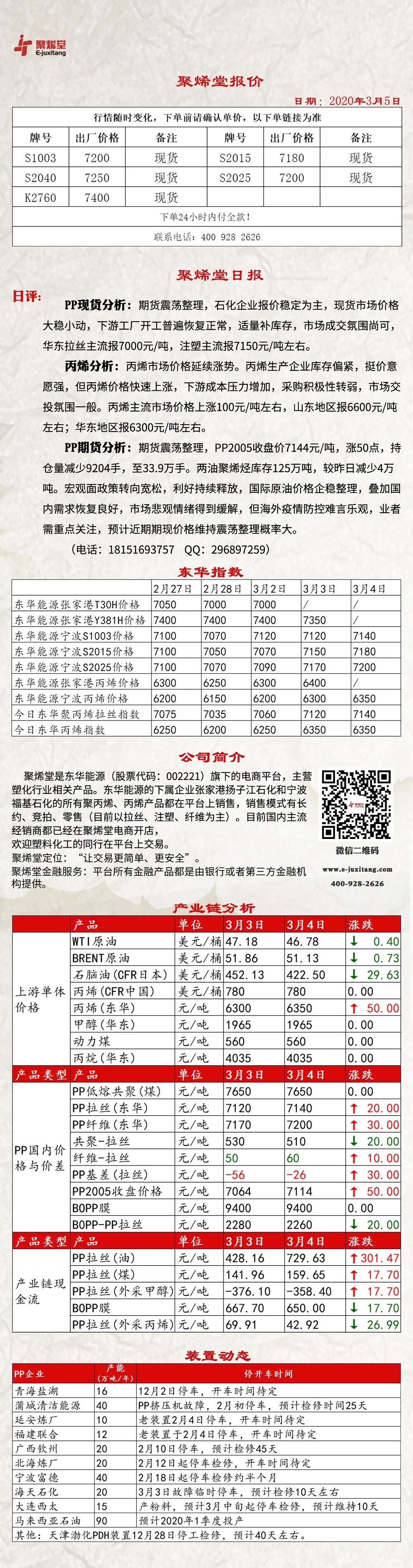 导读:聚烯堂今日报价【20200305】