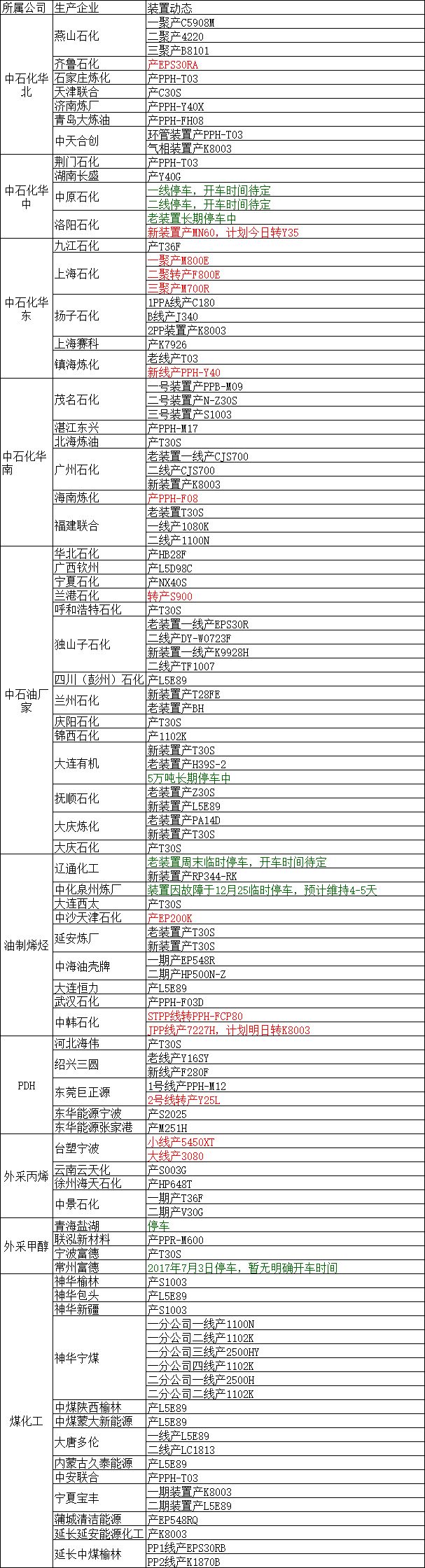导读:12月26日国内装置动态
