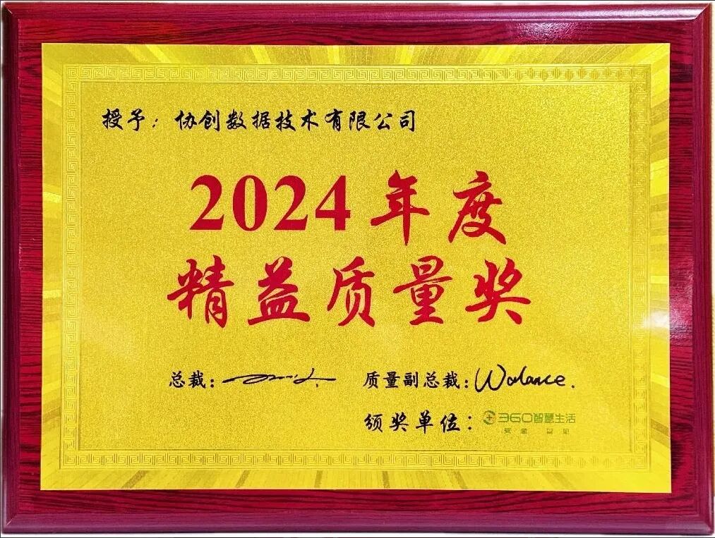 2024年11月29日,360在深圳南山智园举行2024年度供应商质量大会,协创数据技术股份有限公司在此次大会评选中荣获“2024年度精益质量奖”。