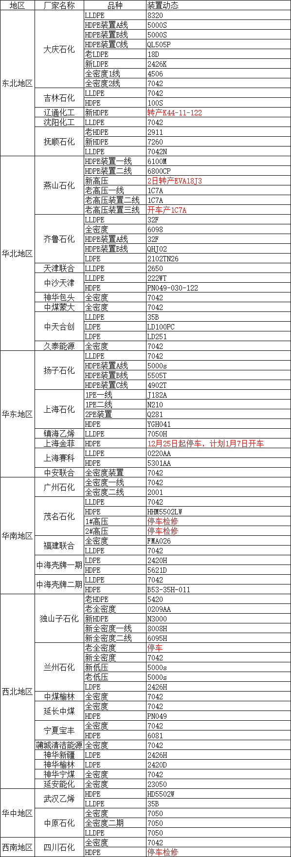 导读:1月3日国内装置动态