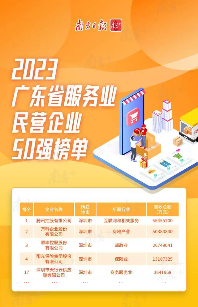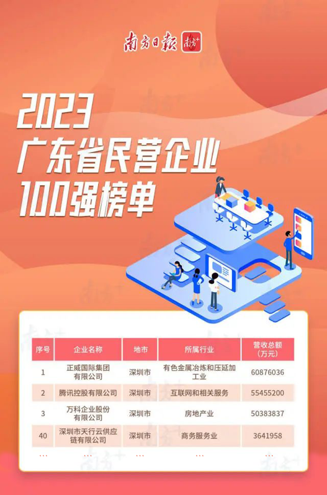 据悉,“2023广东省民营企业100强”系列榜单由广东省工商联根据省委省政府工作部署以及全国工商联要求,组织调研排序。“2023广东省民营企业100强”入围门槛为123.13亿元,其中2022年营业收入超过4000亿元的企业有4家,超1000亿元的有15家,超200亿元的有64家。