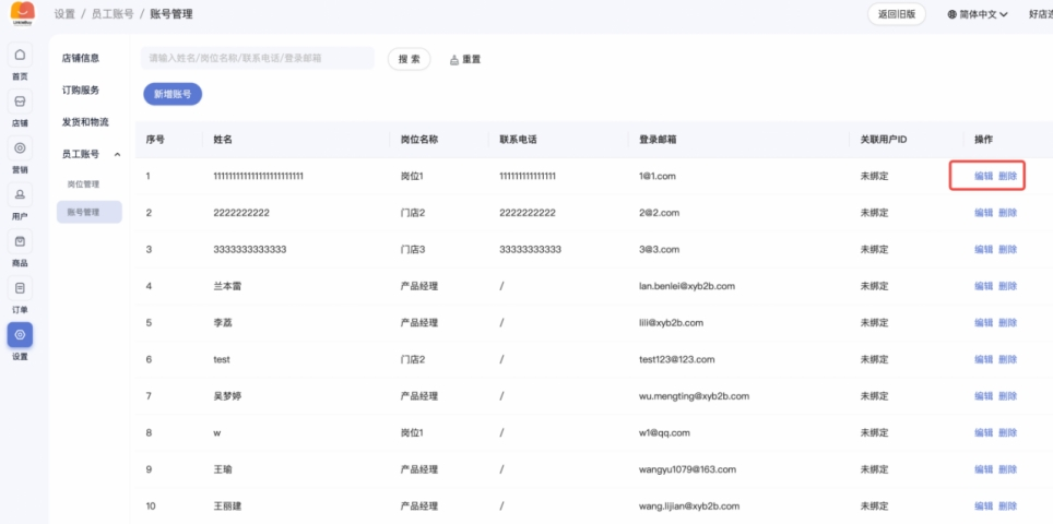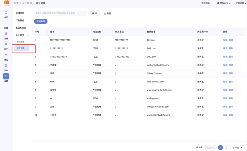 ① 入口:登录后台 - 设置 - 员工账号 - 账号管理
