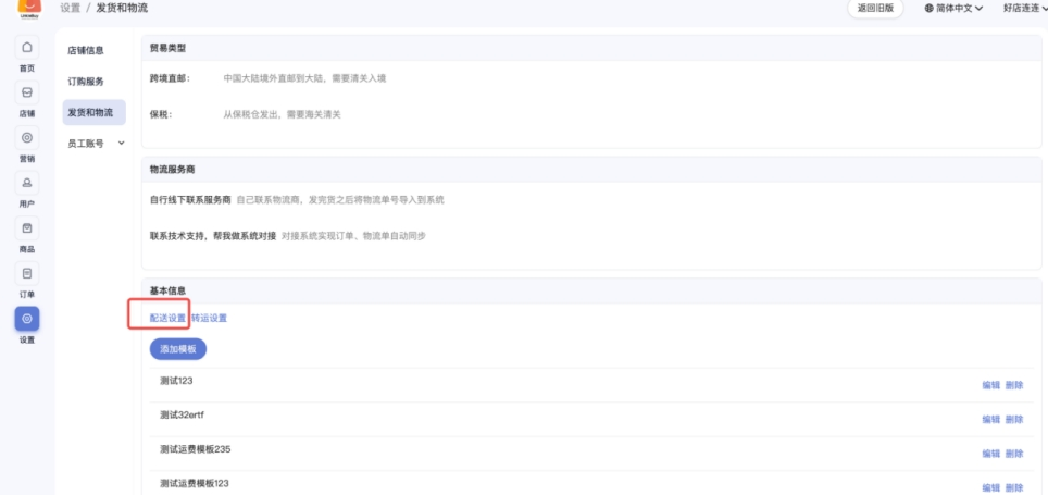 发货和物流设置