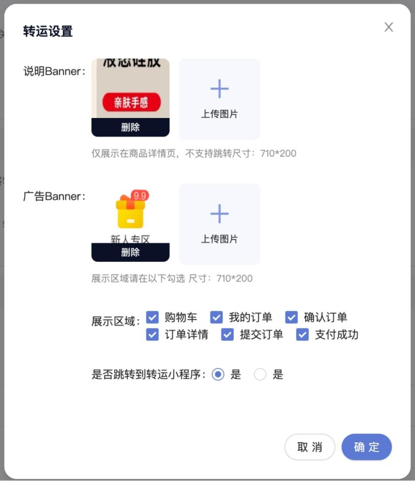 广告banner:将跳转到转运小程序,引导用户下单后跳转到转运小程序去提交转运订单需求;