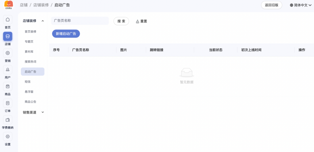 新建:点击【新增启动广告】进入创建页,设置广告名称;