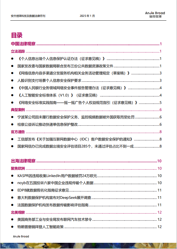 2025年1月3日,国家互联网信息办公室发布《个人信息出境个人信息保护认证办法(征求意见稿)》,旨在规范个人信息出境保护认证工作,促进个人信息安全跨境流动。该办法依据《个人信息保护法》等法律法规,明确了认证适用范围、认证机构资质要求及认证程序等内容。办法规定,个人信息处理者可通过自愿申请认证的方式向境外提供个人信息,但需符合特定条件,如非关键信息基础设施运营者且提供个人信息数量在一定范围内。认证机构需向国家网信部门备案,并对认证过程及结果负责。