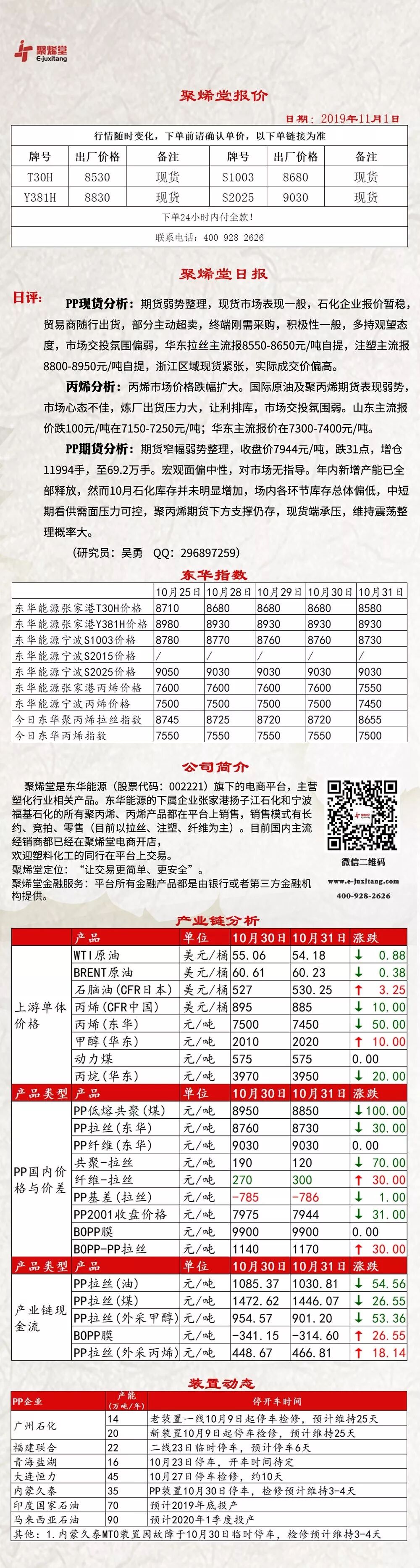 导读:聚烯堂今日报价【20191101】