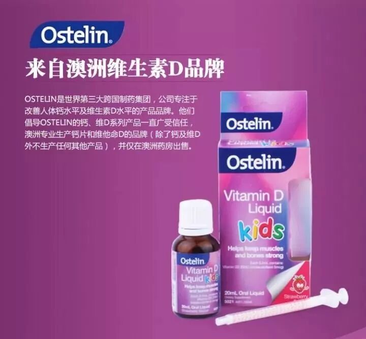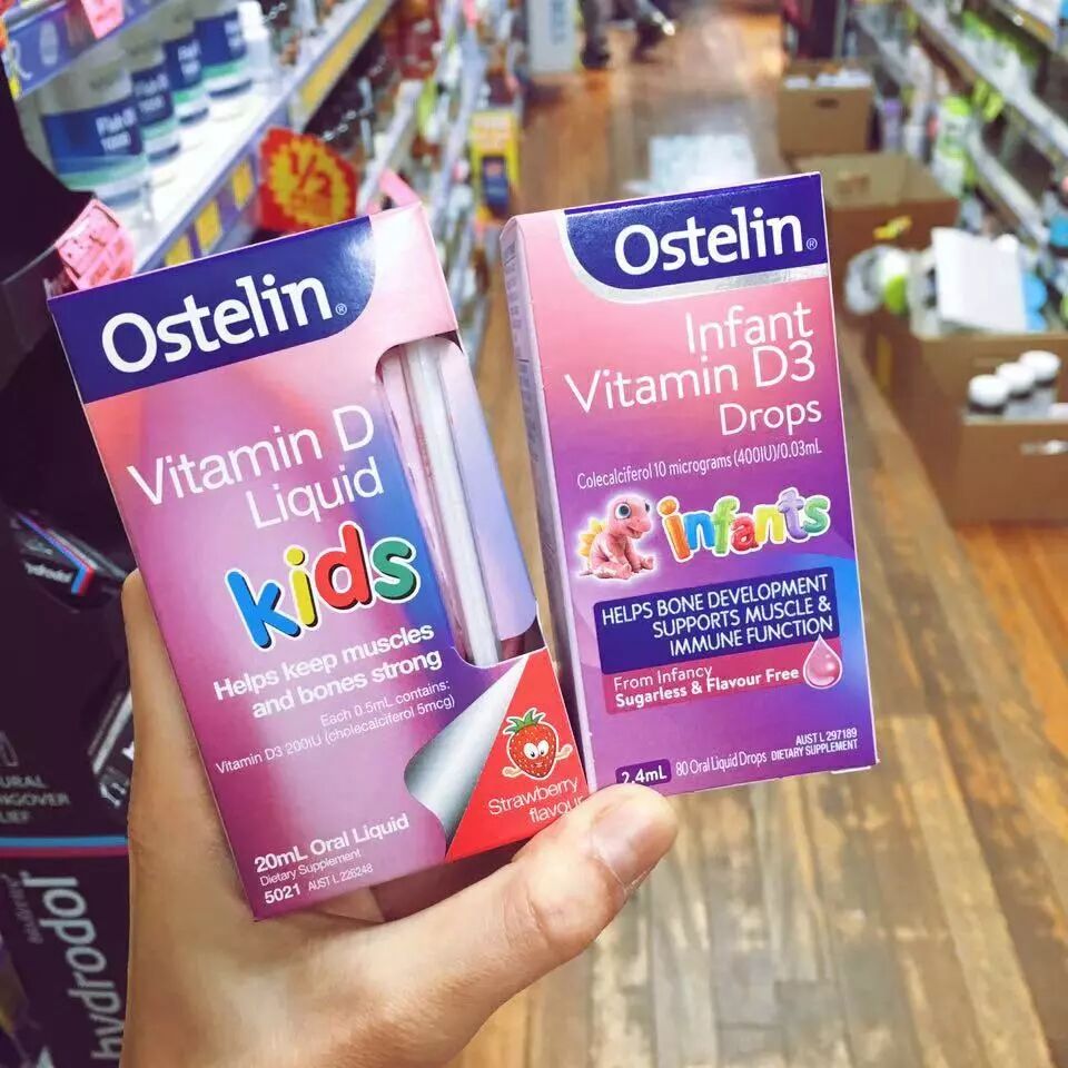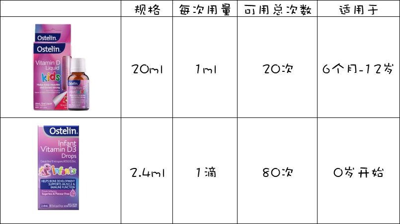 新版本的诞生主要是针对母乳喂养的宝宝。妈妈可以将一滴滴在乳头上,宝宝吸奶的时候就一起补充进去了,而且它没有味道,所以不会改变母乳的味道,宝宝也不会排斥。老版本就比较适合奶粉喂养的宝了。或者在奶里面或者直接对着嘴喷进去也挺有意思哒。 每日总共需要多少维D?无论是澳洲、美国,还是世界卫生组织WHO对一岁以下婴儿的维D摄入量要求都是每日充足摄入量(AI:Adequate intake)为400 IU每日(IU是个国际单位)。也就是说一岁以下的健康正常的宝宝每天总共需要摄入维生素D400个国际单位。1-12岁儿童则大致每日需要摄入400-600 IU。*来自澳大利亚墨尔本皇家儿童医院 *来自澳大利亚国家健康药品研究学会 Vitamin D: 1 IU is thebiological equivalent of 0.025 mcg cholecalciferol or ergocalciferol对于崔玉涛推荐,范玮琪等明星宝宝都在服用的Ostelin儿童维D3是澳洲第一,全球数一数二的儿童维生素D产品。它的服用方法在包装上是这样写的:普通宝宝:每日0.5ml(200 IU)维生素D低下的宝宝:每日1ml(400 IU)也就是说,家长们可以根据宝宝的身体情况补充不同的剂量。适用范围是0-12岁的婴儿儿童,出生第一天就可以服用。