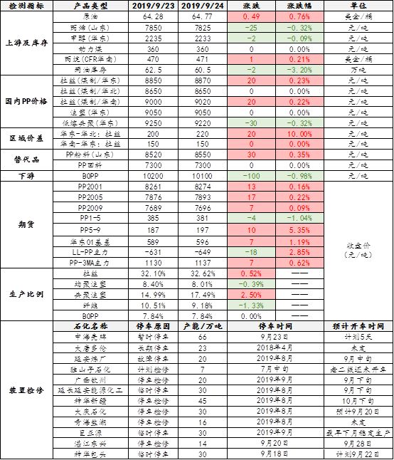 分析:今日PP市场表现平淡,华东、华南地区标品拉丝价格上调20元/吨,标品主流成交价格在8870元/吨附近。