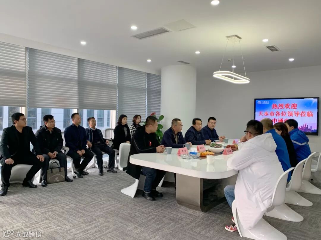 甘肃省天水市商务局局长马小龙、副局长蔚浩然以及秦州区商务局局长康小强一行到中通快递集团四川省管理中心、中通商业四川省公司,考察了解农产品供应链体系建设及农产品社群电商经营等相关情况,并就当地企业与中通商业四川省公司合作销售天水市特色农产品的相关事宜进行商洽,现场签订了花牛苹果、天水富士等农特产的供销合作协议。中通商业四川省公司总经理龙君、中通快递四川省管理中心营运管理部高级经理朱家宁等陪同考察、交流。