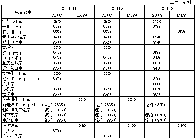神华PP8月20日竞拍价格一览