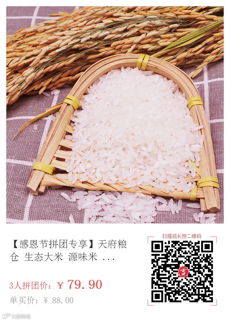 中通·源味米:天府粮仓,生态大米,回味甘香,弹润爽口,大米的品质和口碑都很好,现在购买【团购价79.9元】