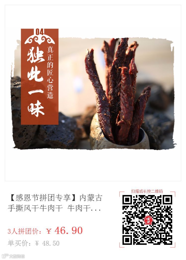 内蒙古手撕风干牛肉干,内蒙古原产,肉质紧密鲜美,慢火烘烤使牛肉丝丝入味,零添加零防腐,回归大自然。