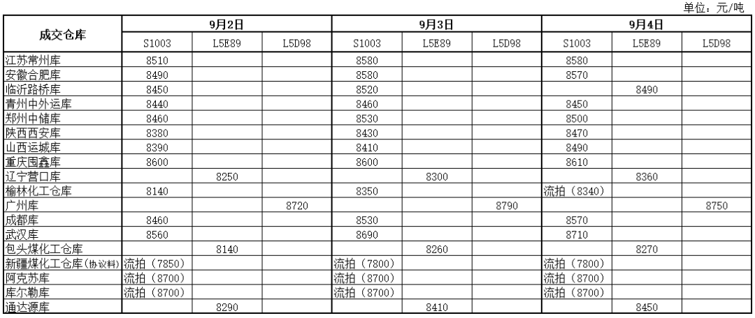 神华PP9月3日竞拍价格一览