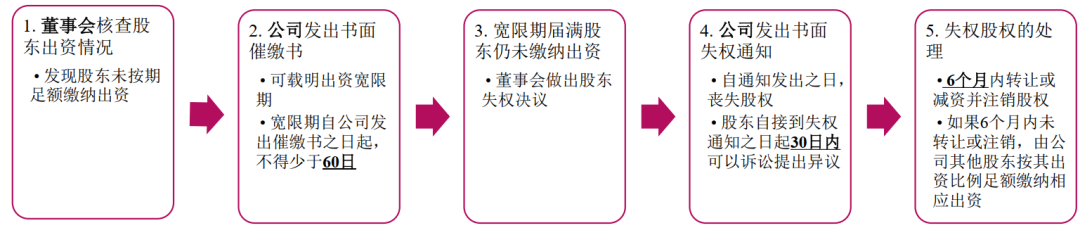 其他股东还需注意的是,如因某位股东经公司催缴仍未缴纳出资而触发股东失权的,其丧失的股权应当自失权日起六个月内依法转让或相应减少注册资本并注销;否则,其他股东须按照出资比例足额缴纳这部分股权对应的出资额,加重了其他股东对公司注册资本的缴付责任。