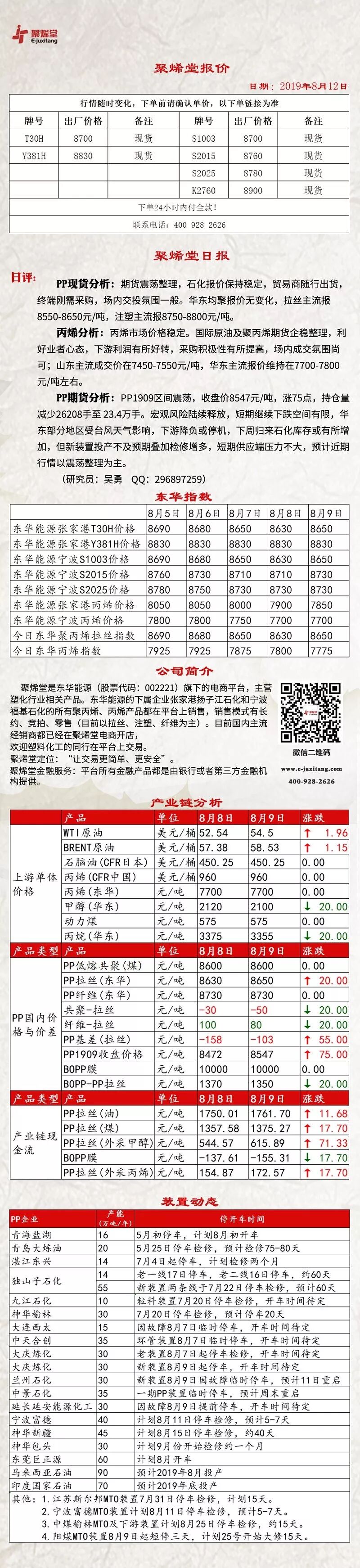 导读:聚烯堂今日报价【20190812】