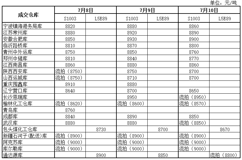神华PP7月10日竞拍价格一览
