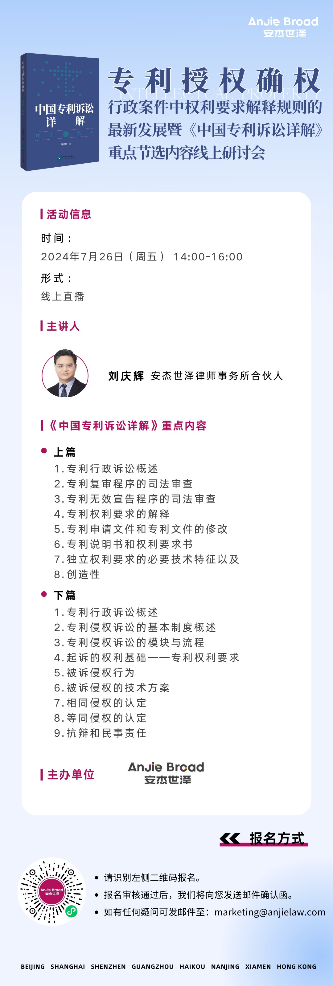 为了方便大家理解和掌握专利授权确权行政案件中权利要求解释规则的最新发展,刘庆辉博士特此开展线上直播研讨会,结合《中国专利诉讼详解》的内容以及最高人民法院的最新案例,详细讲解和分析专利授权确权行政案件中的权利要求解释规则。