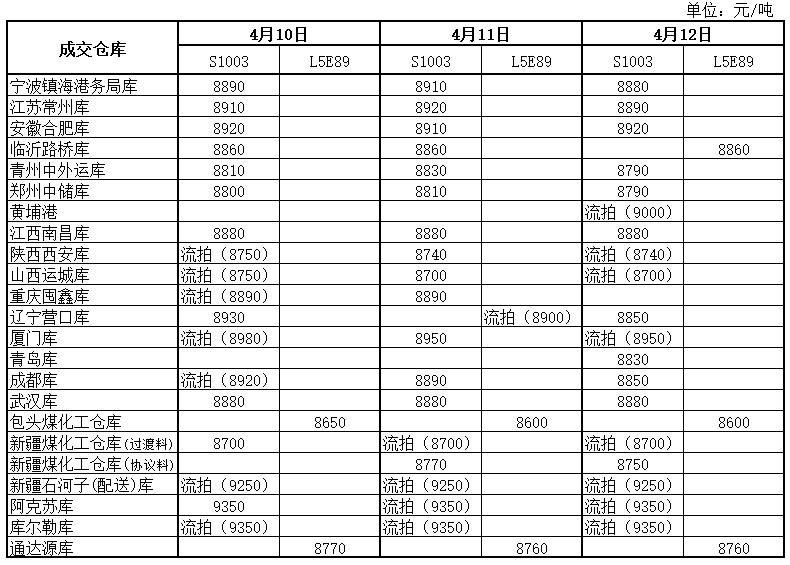 神华PP4月12日竞拍价格一览