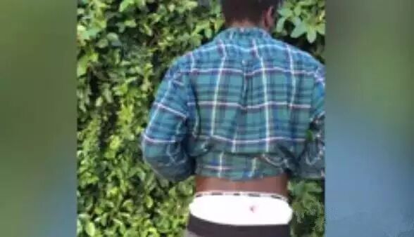 2号哥们学聪明了,直接在腰上系上一件衣服,这样侧漏总不会被人发现了。