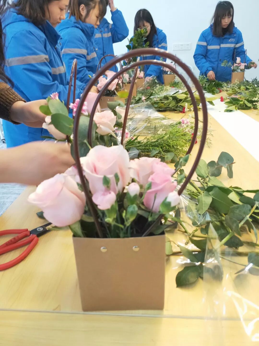 女同事们对插花表现出了极大的兴趣,在老师的指导下,大家边看边学,修枝剪叶,亲自动手完成了一件件精美的插花作品,看着眼前一盆盆色彩缤纷、形态多姿的艺术品,每个人的脸上都绽开了美丽的笑容,纷纷和自己的花艺作品合影留念。