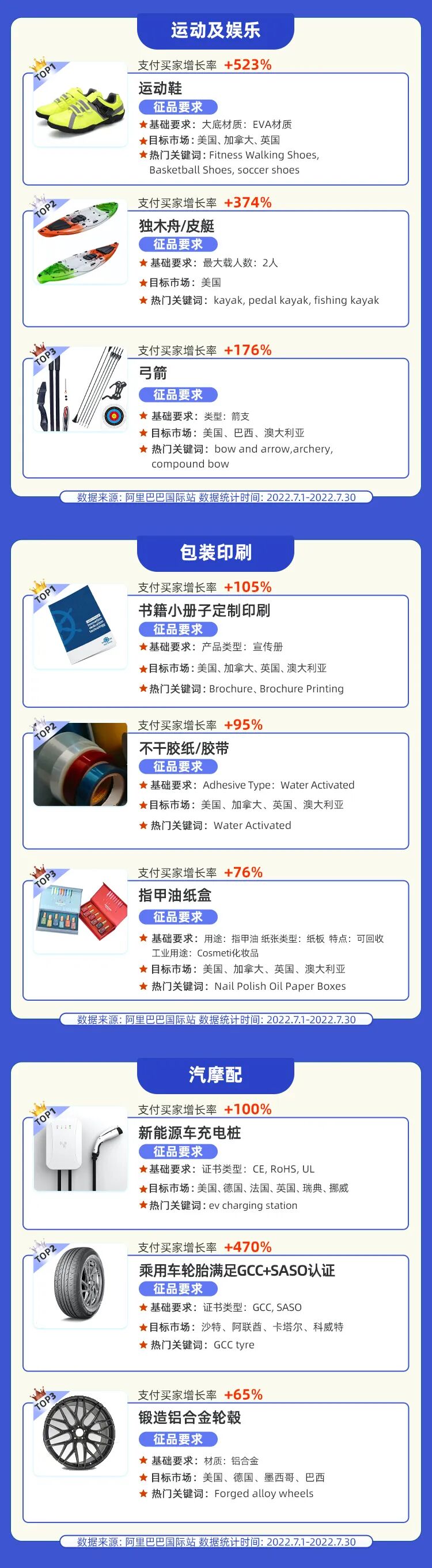 运动及娱乐、包装印制、汽摩配