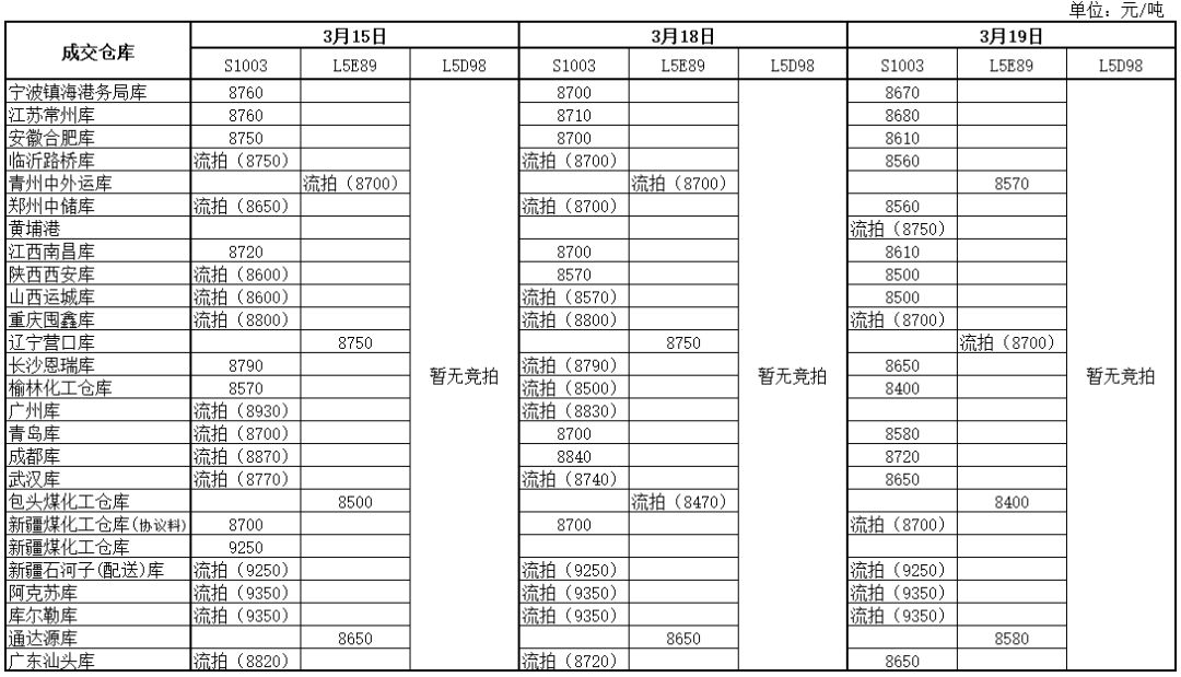 神华PP3月19日竞拍价格一览