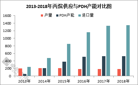 2013年丙烷脱氢这项工艺正式进入中国,国内出现第一套PDH装置:天津渤化60万吨/年产能的丙烷脱氢装置正式投产。但由于PDH工艺引用国外技术,国产丙烷资源作为原料显得“水土不服”,而且国产丙烷需要优先满足国内民用需求,所以国内市场对于进口丙烷的需求逐渐增加。