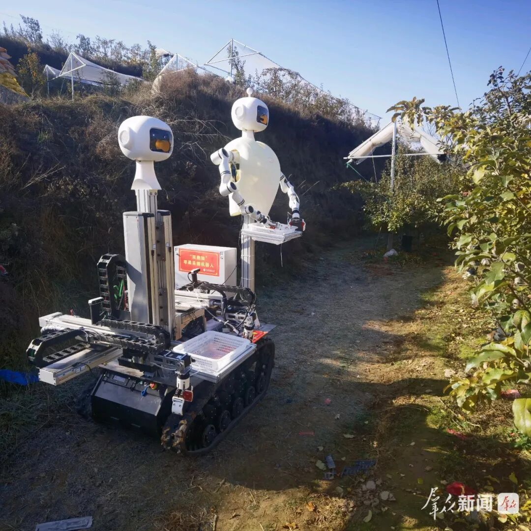 11月13日,在黄陵县隆坊镇景曦苹果试验站,由西北农林科技大学机械与电子工程学院杨福增教授团队研发的“双胞胎”人形苹果采摘机器人,正一边“唱着信天游”,一边开展采摘作业。这台智能装备,以“大娃”“小娃”协同作业的创新模式,为我国苹果产业智能化升级写下了突破性的一笔。
