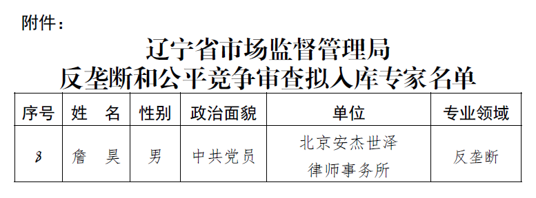 近日,辽宁省市监局发布《关于反垄断和公平竞争审查拟入库专家名单公示的通告》,安杰世泽律师事务所合伙人詹昊博士成功入选专家名单。此前,詹昊博士还曾入选北京、山东等多个省市的反垄断、公平竞争审查专家库。