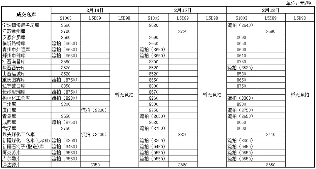 神华PP2月18日竞拍价格一览