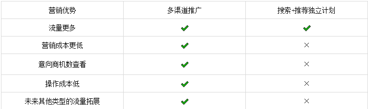 在搜索推广中升级多渠道和分开建搜索+推荐计划的优势是什么?