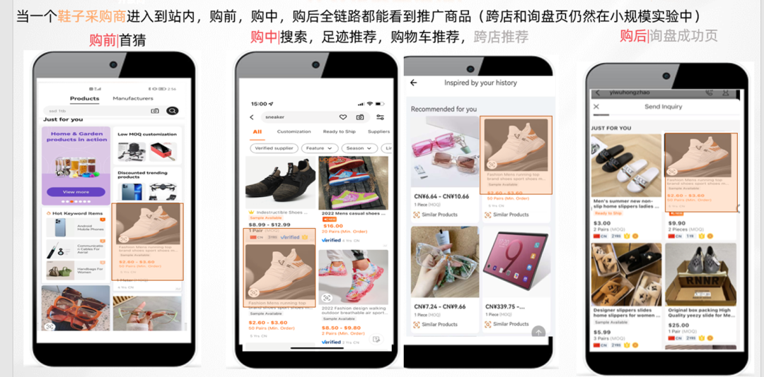 购前,购中,购后全链路覆盖买家浏览路径(跨店和询盘页仍然在小规模实验中)