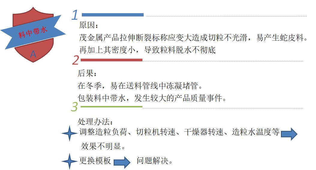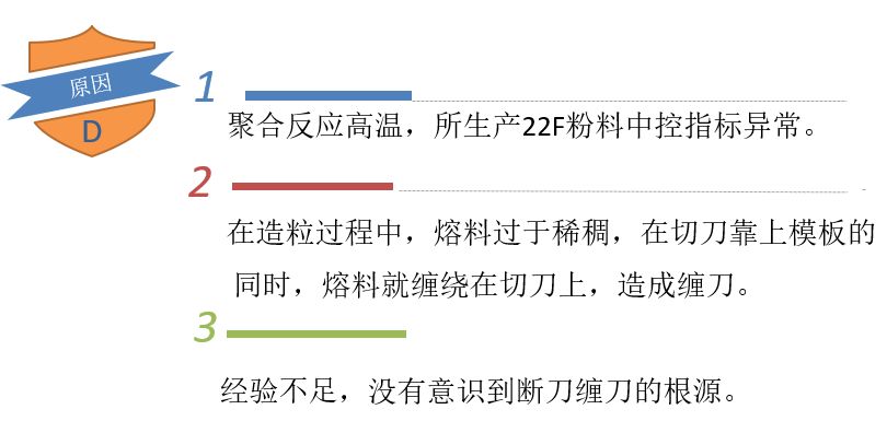 1、生产茂金属产品时一定要严控粉料的中控指标,一旦出现密度、指数、聚合温度等异常,极易引起造粒机组的垫刀、缠刀。