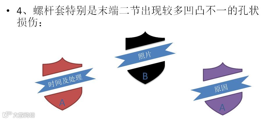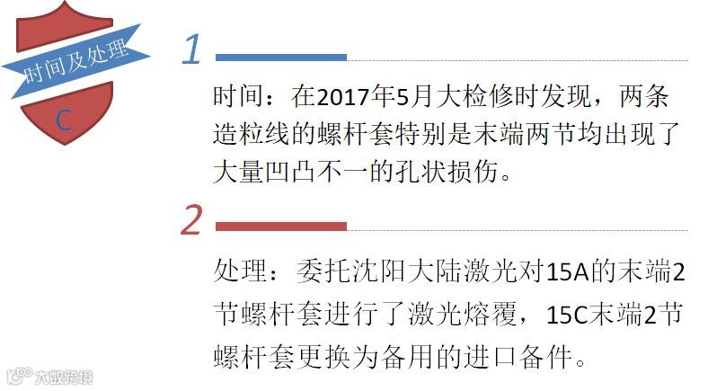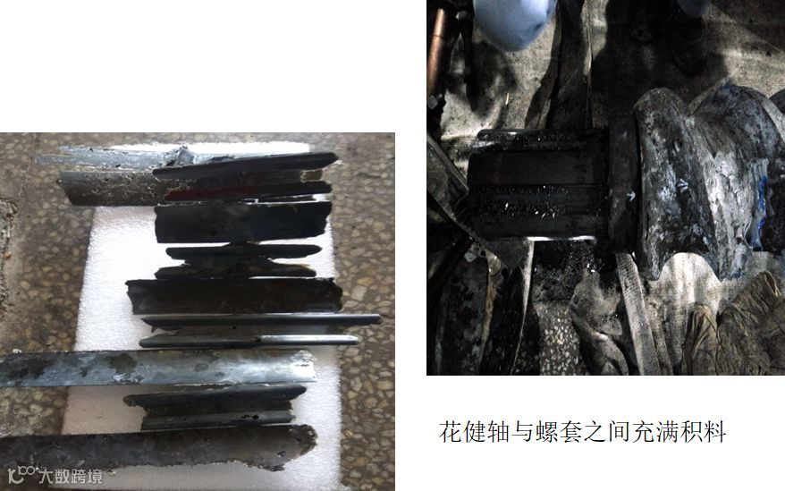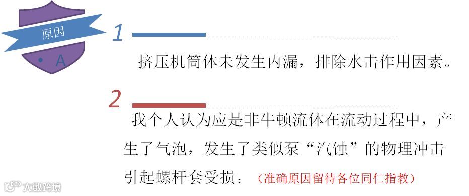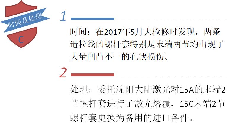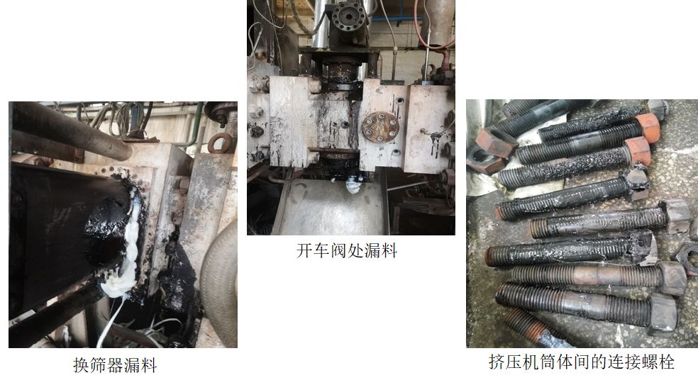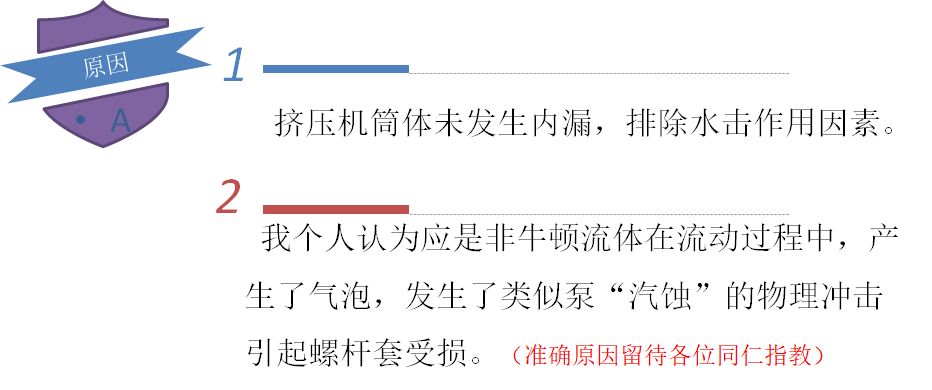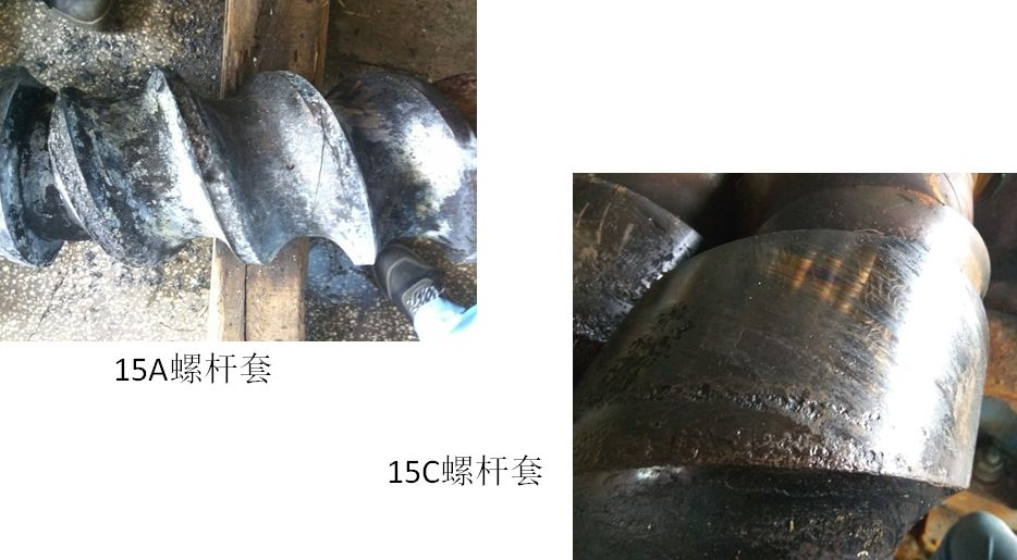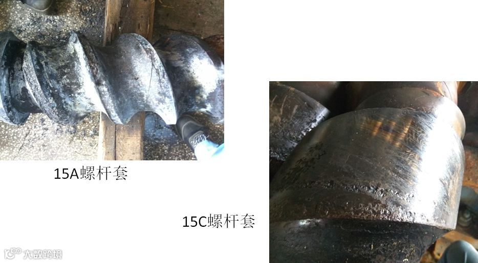 2、挤压机螺杆套特别是末端两节均出现了大量凹凸不一的孔状损伤,形成原因不明。
