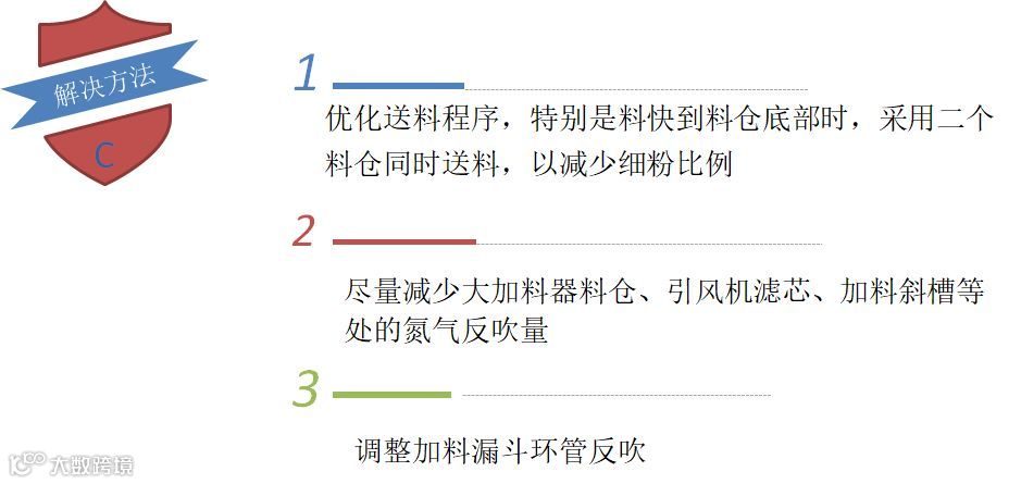 2、严控大加料器、引风机、下料斜槽等点的反吹气量,尽量将反吹量调至最低,以免引起“架桥”。