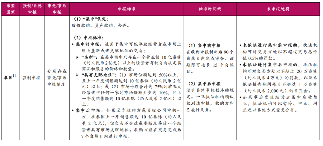 二、东盟十国经营者集中申报要点