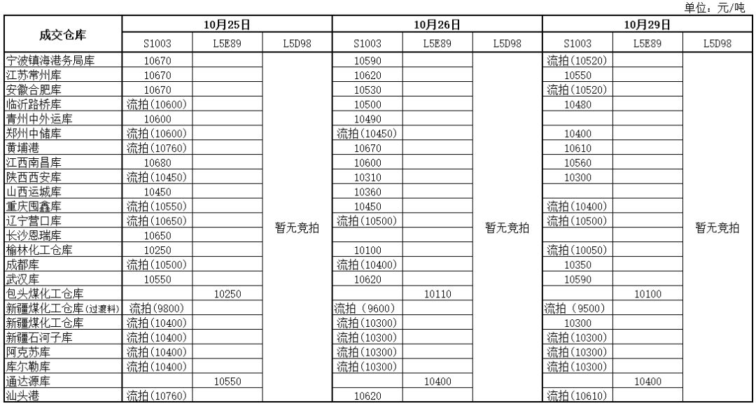 神华PP10月29日竞拍价格一览