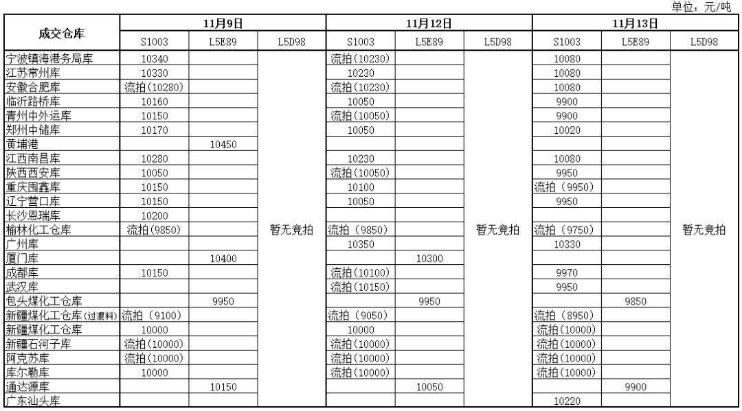神华PP11月13日竞拍价格一览