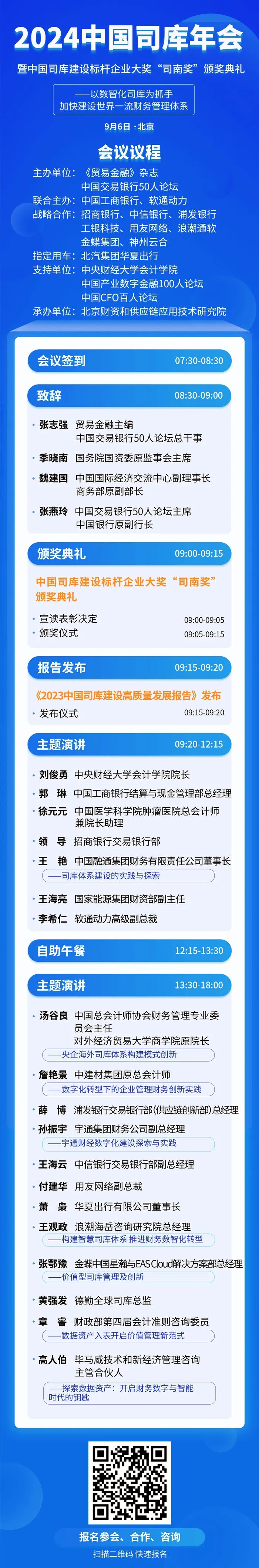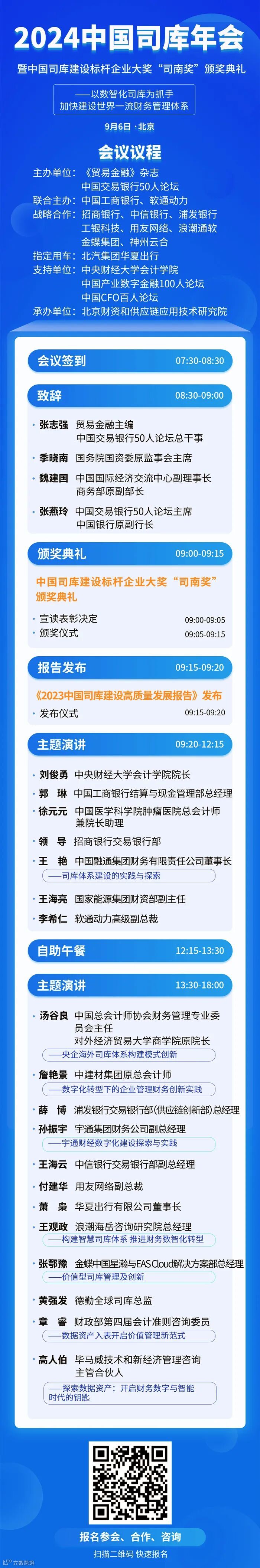 在2024中国司库年会上,将颁发2024中国司库建设标杆企业大奖“司南奖”,以表彰在司库管理领域展现出卓越成就的企业。此外,大会还将发布《2023中国司库建设高质量发展报告》,深度解析过去一年中国司库建设的演进趋势与实战经验。作为特别礼遇,每位参会嘉宾将获赠一本该报告,旨在帮助大家更深入地理解行业动态,借鉴优秀企业案例,进而促进业界间的广泛交流与深度合作。