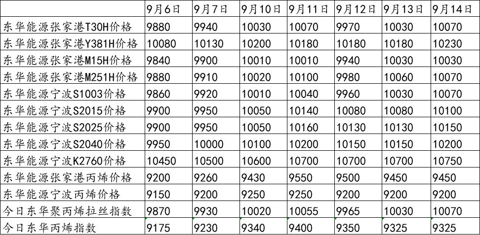 东华能源9月13日竞拍价格及东华指数