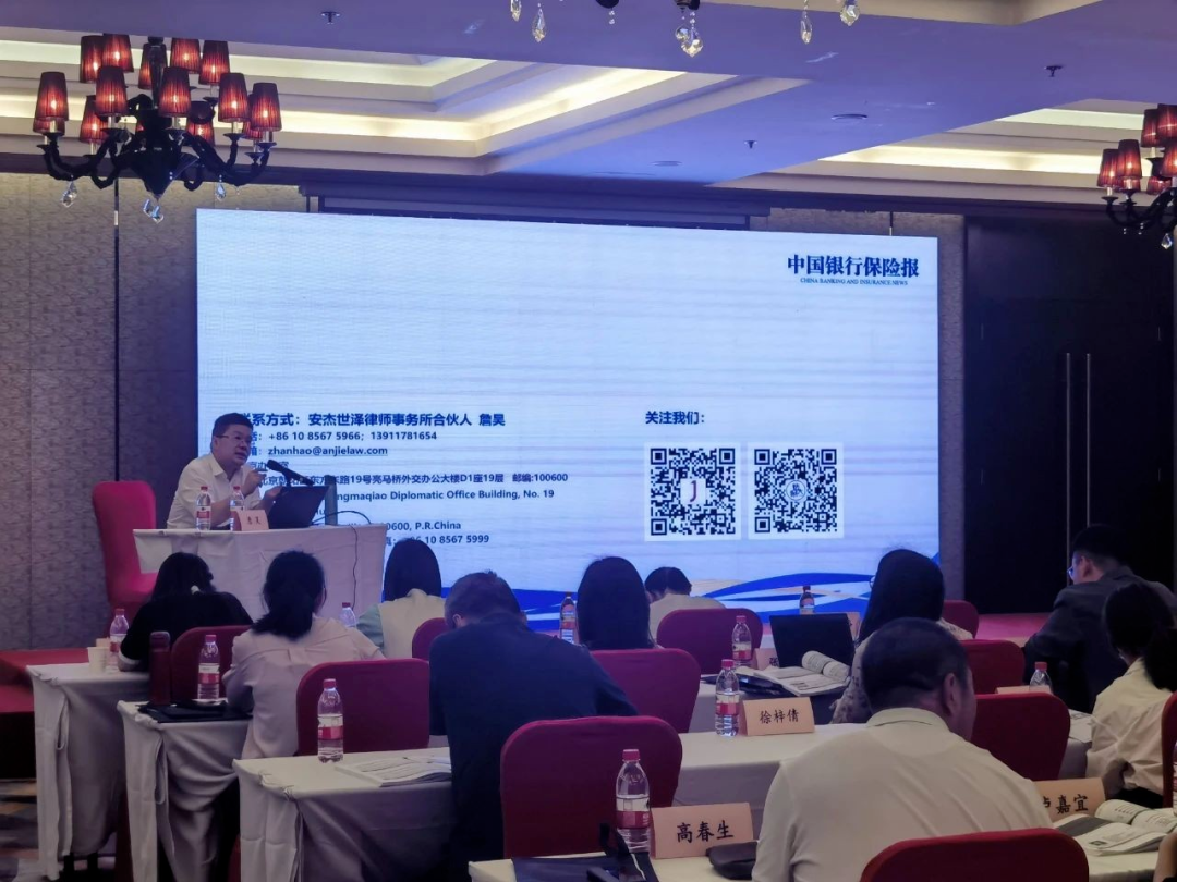 近日,安杰世泽律师事务所合伙人詹昊博士受中国银行保险报邀请,从“保险资金运用法律风险与预防对策”、“保险资金运用监管案例分析交流”两大议题出发,为保险投资出险处置专题培训班做专题分享。